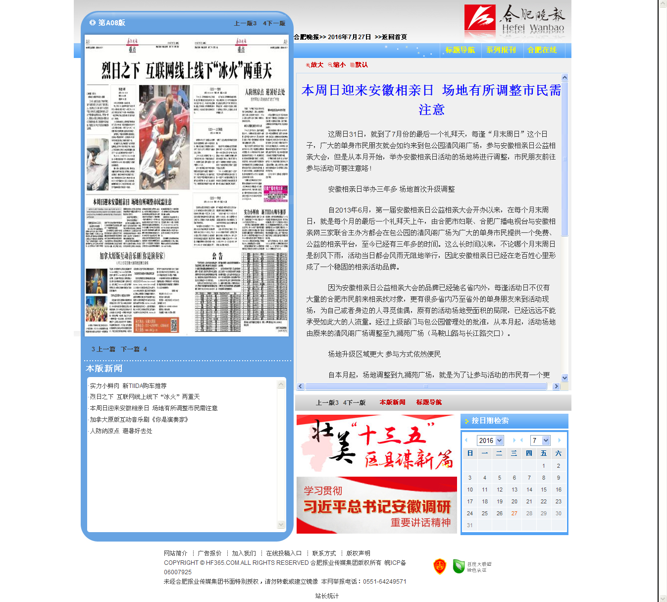本周日迎来安徽相亲日 场地有所调整市民需注意这周日31号,就到了7月份的最后一个礼拜天,每逢这个“月末周日”这个日子,广大的单身市民朋友
