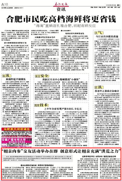 “活动现场,你预约的红娘会陪你一起面对所有的异性相亲者,让你在面对对方的提问或者是想了解对方情况时,红娘老师会给你做些补充,变成一个多人聚会式的相亲,而不再是一对一的尴尬相亲”,安徽相亲网的工作人员告诉记者。