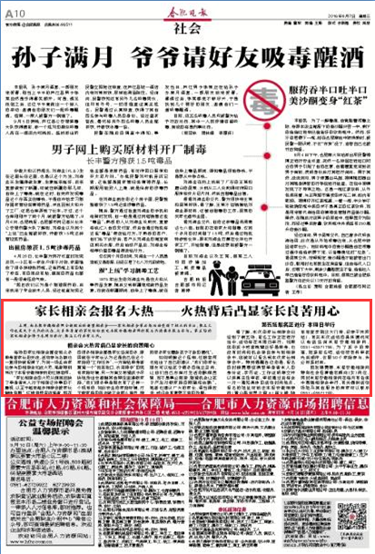 上周,由本报安徽相亲网全新推出的新型相亲会——家长相亲会第五场活动受到了极大的关注,报名工作也是处于大热的状态,众多单身者的家长纷纷致电本报安徽相亲网的报名热线要求报名参与。第五场的家长相亲会将于本周日举行,报名工作异常火热。