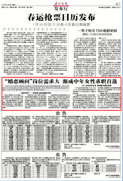 “婚恋顾问”岗位需求大 渐成中年女性求职首选