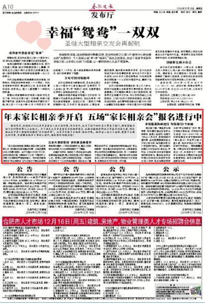 年末家长相亲季开启 五场“家长相亲会”报名进行中