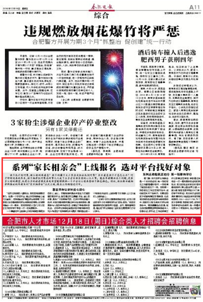 “这样不仅可以提高相亲成功率,还可以保证前来为子女相亲的家长们的私密性。”来自安徽相亲网的红娘老师介绍道。此外,特别强调的是,推出的“家长相亲会”活动报名需要预约才可以参与。