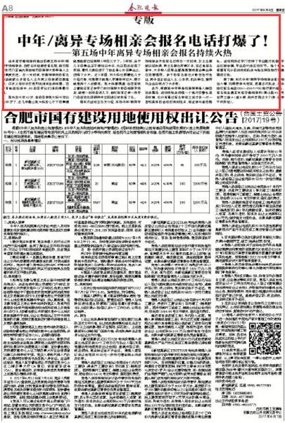 由本报安徽相亲网推出的第五场中年/离异专场相亲会,自昨日开始接受报名起,就引起了我市乃至省内其他城市的离异大龄单身人士的高度关注。仅一天时间,安徽相亲网的报名电话就被众多报名人士及其父母亲戚狂轰滥炸。许多父母纷纷打进热线询问各种问题。在所有电话咨询中,60后的家长们询问得最仔细。