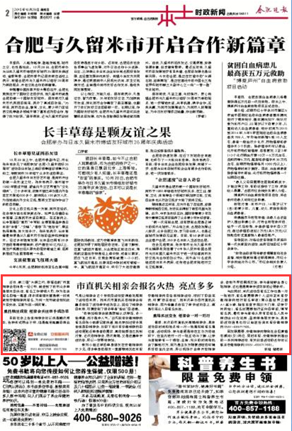 与此同时,本次活动的报名工作也是一对一地进行,报名者需要携个人证件至本报安徽相亲网进行报名审核(黄山路世界之窗A1座9楼,陆军军官学院北大门旁,总参干休所站),报名时需要进行证件的审核,填写报名表,最终参与者将从所有的报名人员中筛选出40位优质、品质单身朋友参与,具体的活动信息也可以电话咨询本报安徽相亲网0551-65571768。