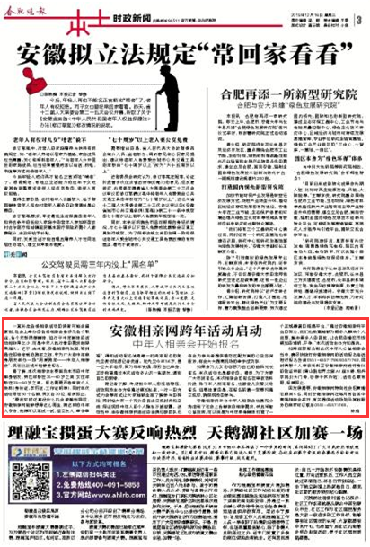 安徽相亲网是本报全力打造的本土强势婚恋品牌,本次举办中年人相亲会也是充分考虑到了社会上各群体的相亲需求,并且采取公益性质,可以说是为中年单身群体打造了一个正规靠谱的择偶平台,“通过本报安徽相亲网平台的努力,我们也希望能够为更多人解决个人问题,解决更多人的困扰,让合肥的婚恋市场更加的透明、干净”本次活动主办方如是说。