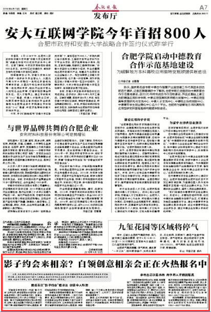 据悉,这次所使用的“影子约会”法,在我省还是首次出现,也是安徽相亲网独家引入并创新推出的,单身的朋友可别错过哦~