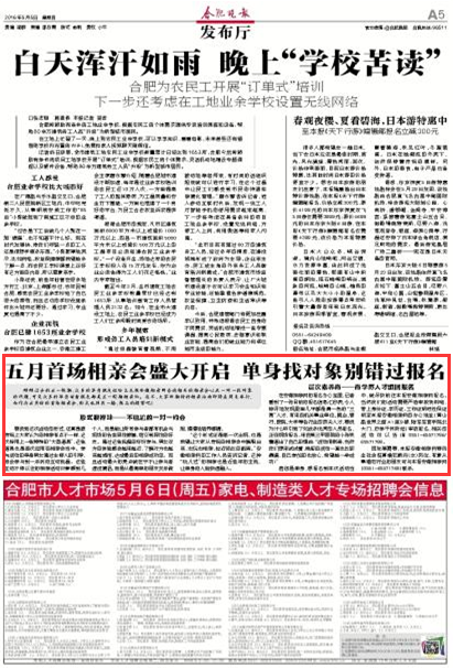 刚刚过去的五一假期,众多的单身朋友就纷至本报安徽相亲网咨询相关的相亲会以及一对一找对象的问题,可见众多的单身读者朋友都是五一假期相亲忙。这不,大家所期待的相亲活动即将在周末举行,而作为五月份的首场相亲会,形式也别具一格,报名的赶紧吧!