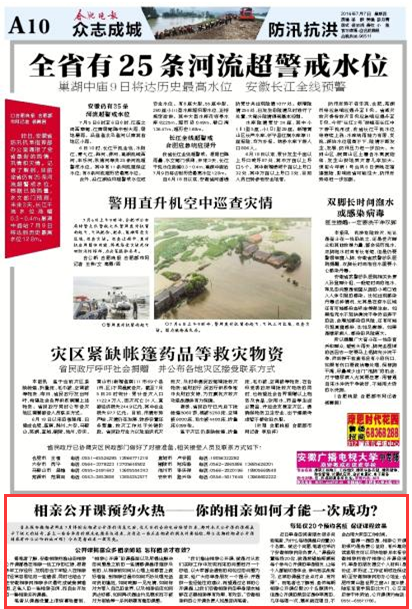 自本报安徽相亲网在7月将推出相亲公开课的消息之后,近几日的咨询电话陆续打来,都对本次公开课的课程表示了极大的好奇,甚至一些非单身的朋友也想参与进来,为身边一些正在相亲的朋友来讨要经验,那么这期的相亲公开课到底有什么必听的地方呢?今天记者就来一探究竟。