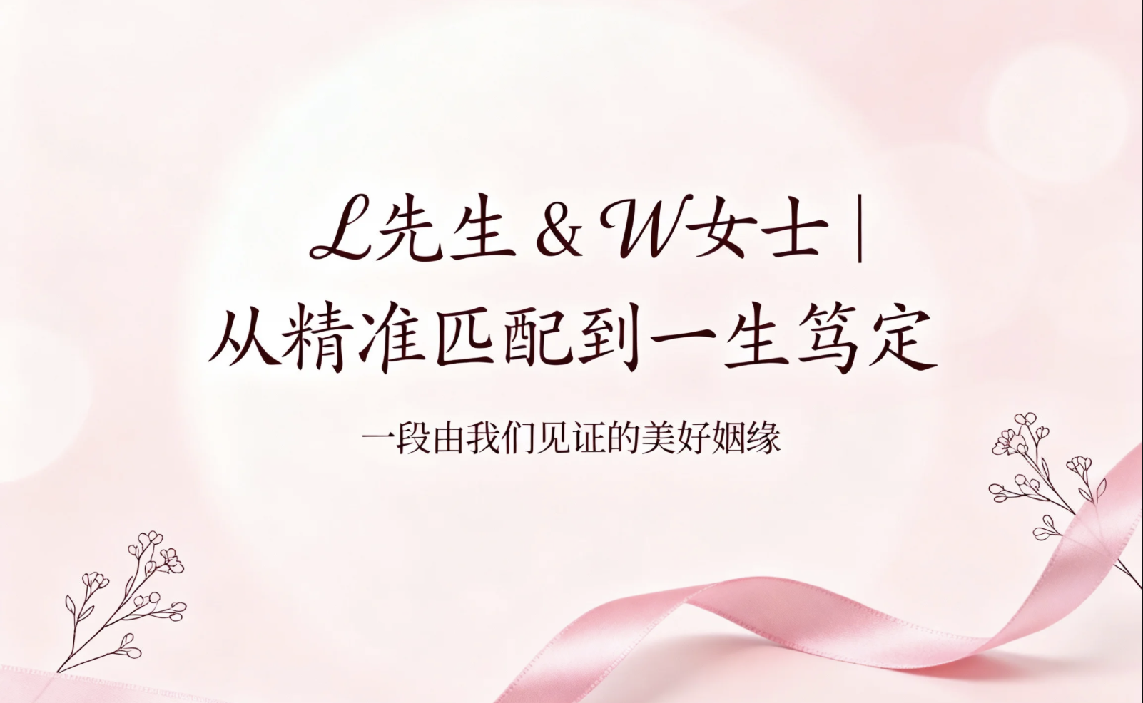 从精准的线上匹配到幸福的线下相守,我们荣幸地见证了这段美好姻缘的全过程。祝福L先生和W女士,新婚快乐,百年好合!